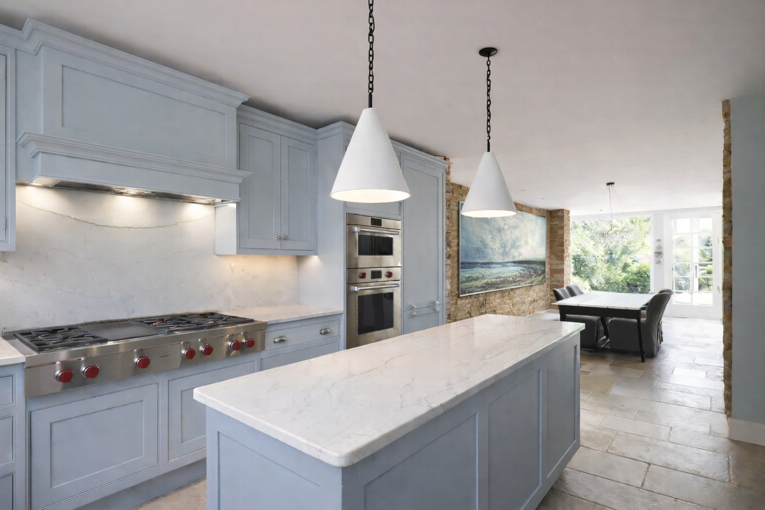 The layout was partially reconfigured to improve flow and usability, including the creation of a spacious master bathroom and dressing area, as well as dual home offices. Supremati managed every aspect of the interior design process – from flooring and joinery to kitchen cabinetry, stone worktops, and the careful restoration of historic oak features.